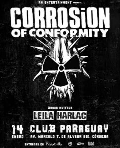 La banda estadounidense Corrosion of Conformity vuelve a la Argentina y hará escala en Córdoba con un show en Club Paraguay, el próximo miércoles 14 de enero de 2026.